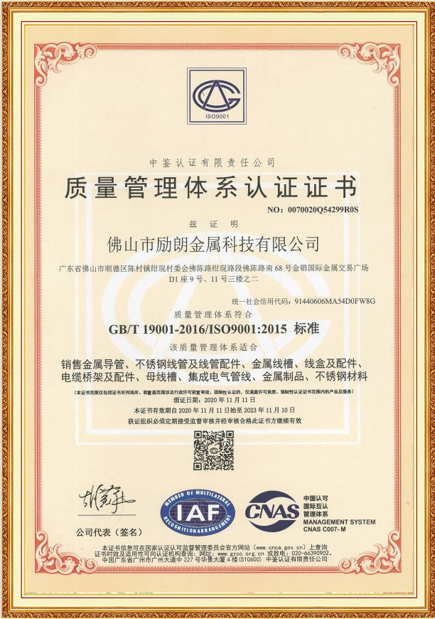 佛山市勵(lì)朗金屬科技有限公司旗下專注于不銹鋼穿線管等產(chǎn)品,創(chuàng)建于2010年,主要針對(duì)與酒店、學(xué)校、醫(yī)院、別墅、小區(qū)、科學(xué)館、生物科技、造紙廠、鋰電子廠、新能源開發(fā)廠等領(lǐng)域提供專業(yè)的服務(wù)與指導(dǎo):產(chǎn)品專注于生產(chǎn)304/316不銹鋼穿線管、不銹鋼線管、不銹鋼接線盒、不銹鋼橋架、不銹鋼杯梳、離墻碼等線管與配件,各證書齊全,庫(kù)存充足,工程項(xiàng)目有優(yōu)美科集團(tuán)、珠海長(zhǎng)隆博物管、中煤鄂爾多斯能源化有限公司、內(nèi)蒙古必威安泰生物科技有限公司、玖龍紙業(yè)(控股)有限公司、河南牧原股份有限公司。